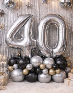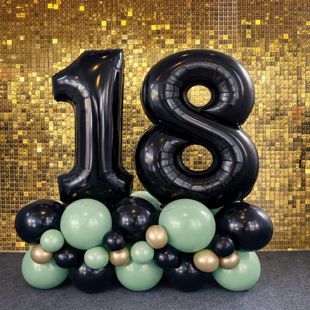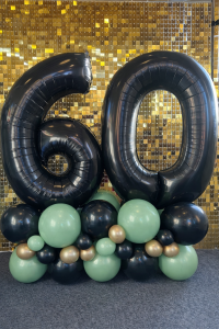 Organisk luftfylld dubbelsiffra består av ca 50st latexballonger i olika storlekar och 2 folie siffror. Ballongen har en tyngd och den står stadigt på bordet eller marken. Välj siffror och färg + vilka färger du vill ha på latexballongerna.